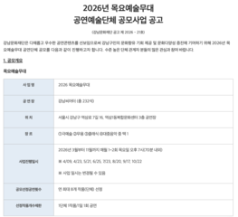 2026년 목요예술무대 공연예술단체 공모사업 공고 / 26.02.13 마감