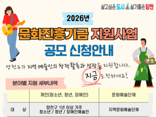 2026년 양천구 문화진흥기금 지원 사업 공모 / 26.02.13 마감