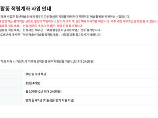 청년예술인 예술활동 적립계좌 / 26.02.13 마감