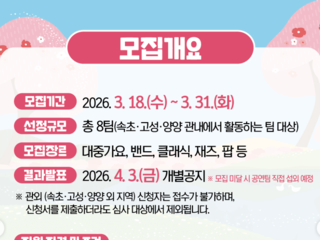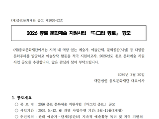 2026 지역문화예술 공모사업 참여 모집 공고 / 26.03.15 마감
