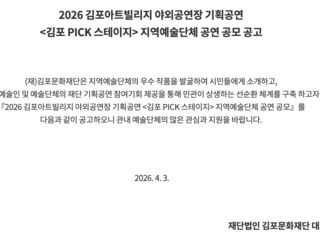 2026 김포아트빌리지 지역예술단체 공연 공모 / 26.04.16 마감